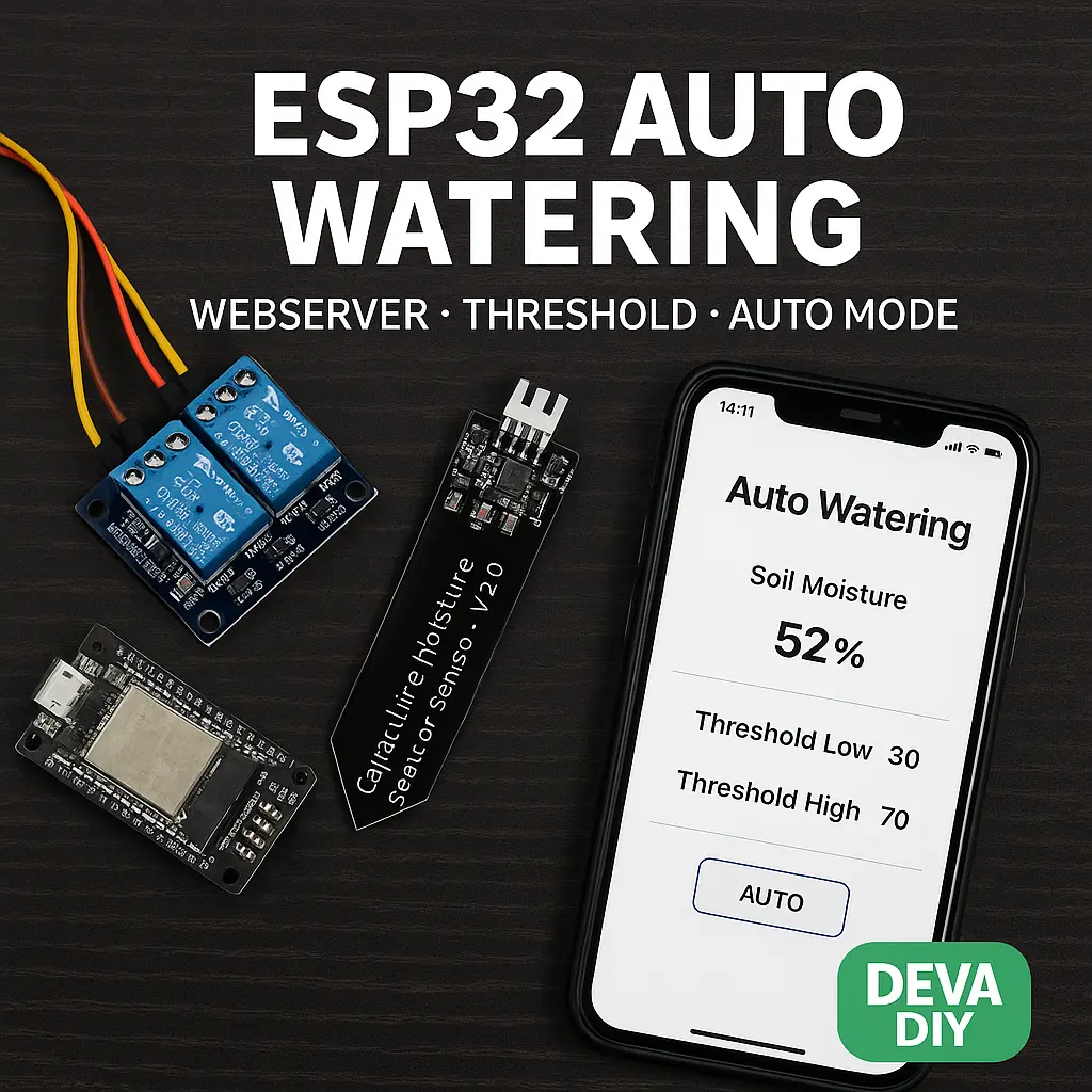 ทำระบบรดน้ำอัตโนมัติด้วย ESP32 อ่านความชื้นดินจากเซนเซอร์ Capacitive v2.0 แสดงผลและตั้งค่า Threshold/โหมด Auto ผ่าน WebServer ในวง Wi-Fi เดียว มือใหม่ก็จบได้เร็ว
