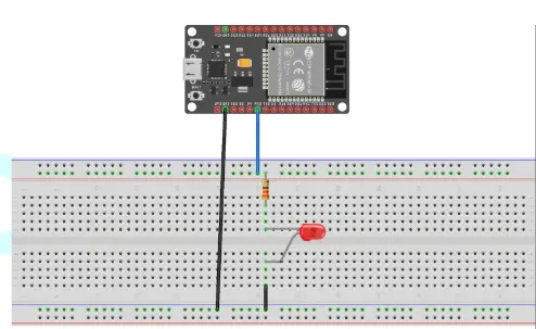 • ต่อปลายตัวต้านทานอีกด้านเข้ากับ GPIO 16 ของ ESP32