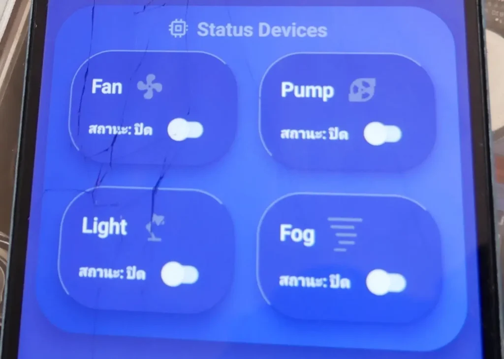- ปุ่มใหญ่ชัดเจน (On/Off/Toggle) + สถานะ “Manual / Auto / Timer” ใต้ชื่ออุปกรณ์